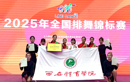 操舞教研室的吕默带领着艺术学院的本科生和研究生组成我校排舞队出征。勇夺甲组女子小集体平滑类自选项目第一名及甲组中级原创项目第二名两项重磅荣誉,同时我校排舞队获得体育道德风尚奖。这份荣耀属于每一位挥洒汗水的队员和默默耕耘的指导团队。吕默老师在赛后激动地表示,“从备赛到出征,学校为我们提供了坚实的保障。同学们将课堂所学转化为赛场实力,用艺术诠释体育精神,用拼搏书写青春篇章。她们在国家级平台展现的西体风采,正是西体学子深化体艺融合育人理念的生动注脚”。