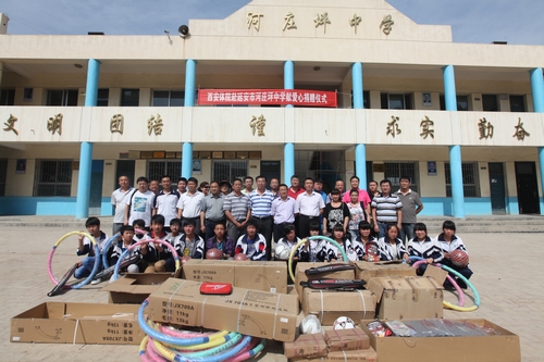 河庄坪中学位于延安市宝塔区,办学条件比较落后,学生的课外体育也比较单调缺乏,去年院团委在这里成立了“大学生社会实践基地”,给当地学生带去了新颖的教学理念。为了给孩子们送去更多的温暖和关怀,了解基础教育情况,参观学习期间,党委副书记朱元利同志带领二十多名党员同志带着全院党员的重托,专程到河庄坪中学开展调研交流和爱心捐助活动。