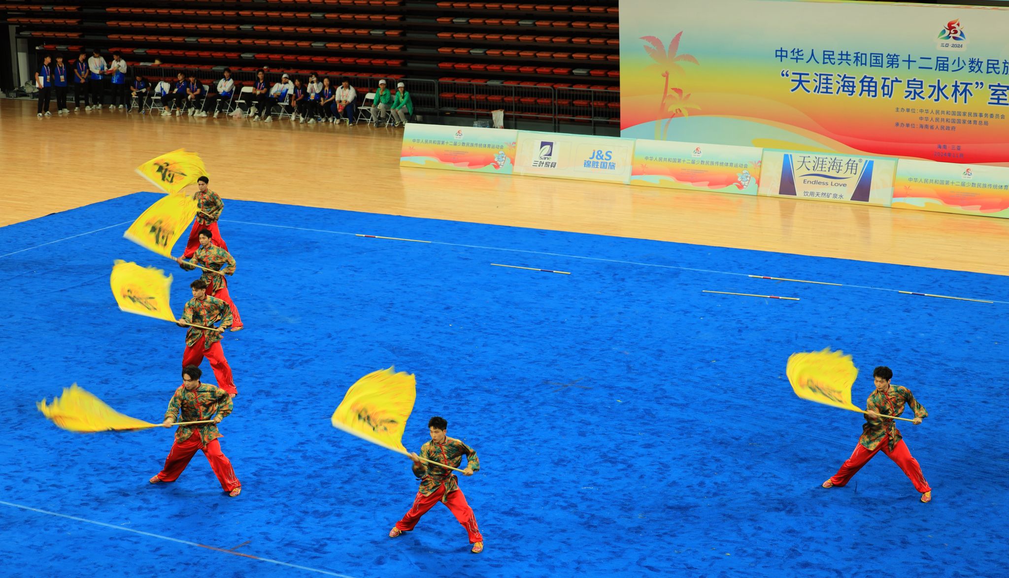 本网讯    11月22日至30日,第十二届全国少数民族传统体育运动会在海南省三亚市举行。中共中央政治局常委、全国政协主席王沪宁出席开幕式,国务委员谌贻琴出席闭幕式。陕西省委常委、省委统战部部长李明远担任陕西省代表团团长。我校武术学院18名学生代表陕西省出征全国少数民族传统体育运动会并获得表演项目比赛银牌,其中3人荣获体育道德风尚奖。