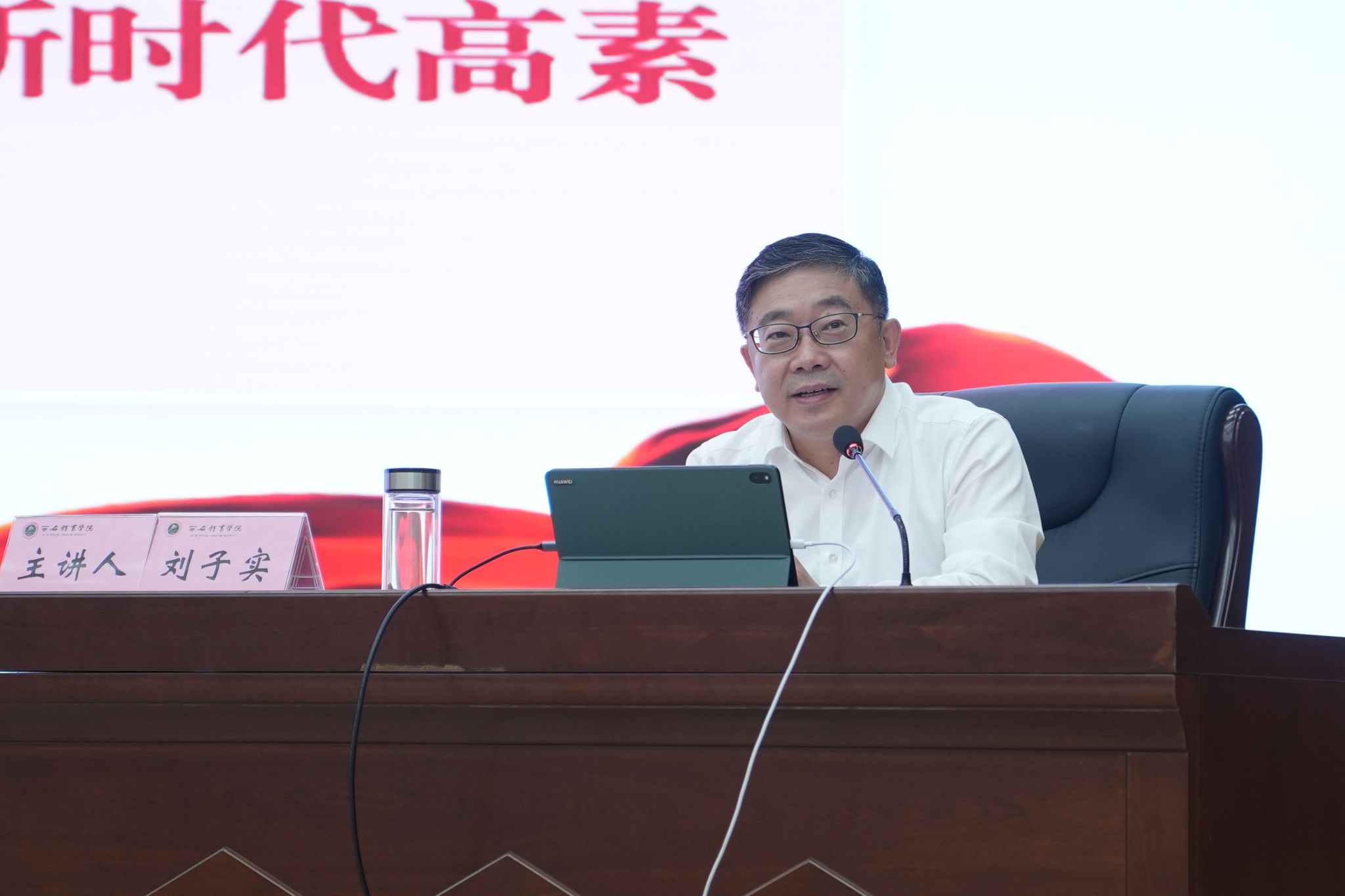 刘子实以《以教育家精神为引领 建设高素质教师队伍》为题作开班报告。他简要总结了教师队伍在优化结构、强化引育、人才汇聚、成果产出等方面的发展态势,分析了存在的不足和短板。他指出,面对“教育强国”“体育强国”“健康中国”等国家战略光荣使命,面对高等教育发展新态势,建设一支师德高尚、业务精湛、结构合理、充满活力的教师队伍,是支撑学校跨越发展的迫切需求与坚实保障。要全面理解教育家精神的核心内涵,以习近平总书记阐述的“理想信念、道德情操、育人智慧、躬耕态度、仁爱之心、弘道追求”教育家精神核心内涵为引领,牢记为党育人、为国育才初心使命,教育追求,全面提升理想信念、育人智慧、道德情操、业务能力、国际视野各方面综合素养,全面塑造新时代教师的精神标识和职业操守。要深刻理解新时代高校体育教师的价值定位,在国家战略层面,争做强国建设、全民健康的引领者;在育人体系中,争做立德树人的践行者;在学校发展格局中,争做特色突围的主力军。要锻造新时代高校体育教师素质能力,即有为党育人、为国育才的坚定政治素养,懂理论、能实践、善训练的扎实专业素养,从一线出发,回馈一线的鲜明科研素养,以体载道,润物无声的深厚文化素养,敢于突破、善于跨界的突出创新素养,立足西安、链接世界的开阔国际视野。